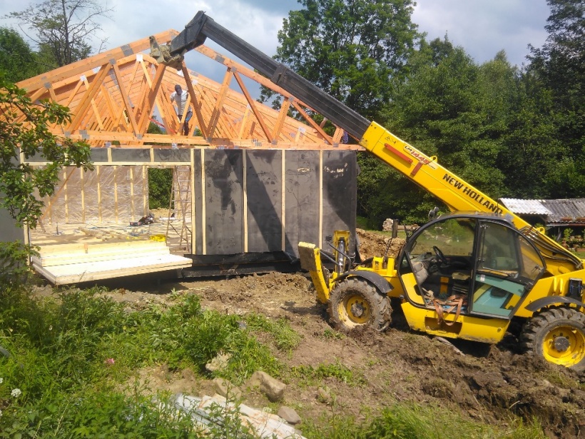 Bungalov tvořený formou polo modularyty, který byl složen na místě u zákazníka a dotvořen k jeho přání. Celkový koncept domu zapadá do okolní přírody a dům je doplněn o velkou terasu, na kterou je vchod z obývací části domu. Videa z pokládek našich domů můžete nalézt na našem Youtube channelu Hutchhouse.