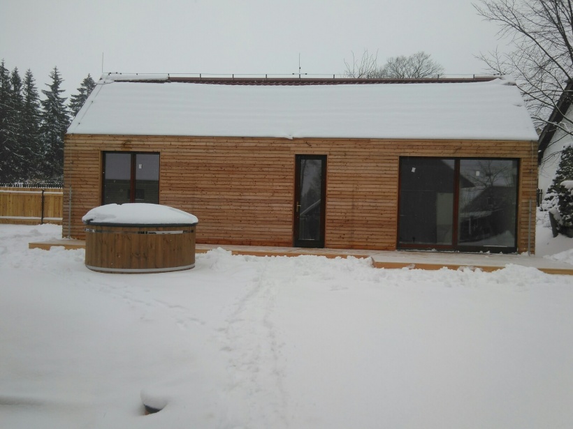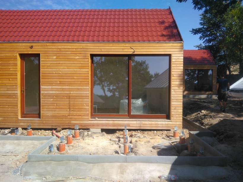 Dva domky řady DESIGN 12 o rozměru 12 x 4,2 m. Videa z pokládek našich domů můžete nalézt na našem Youtube channelu Hutchhouse.