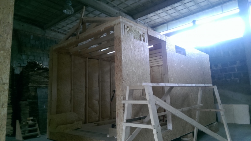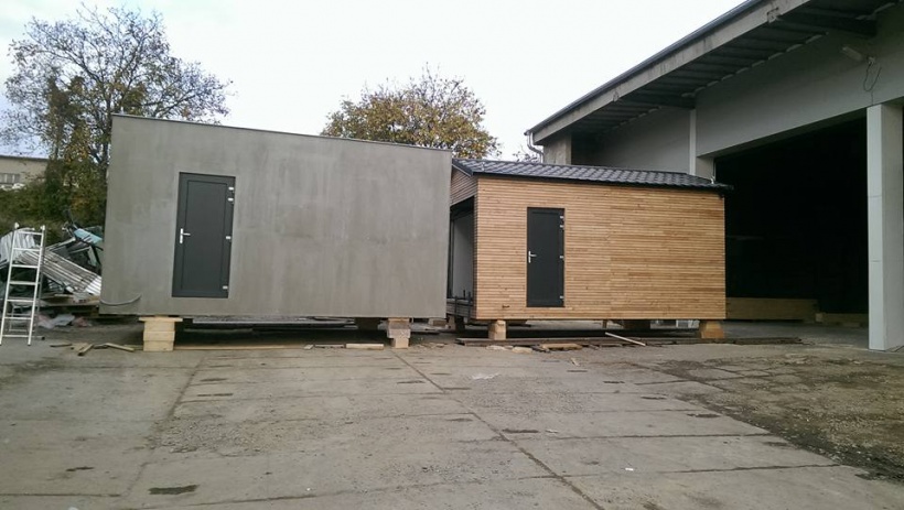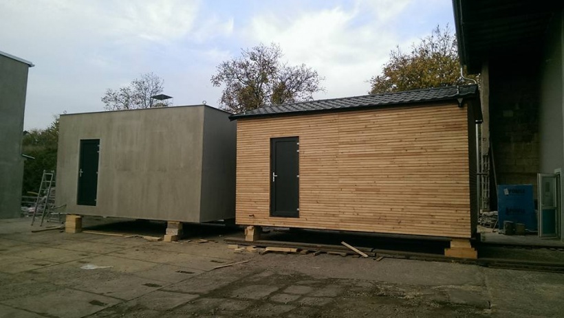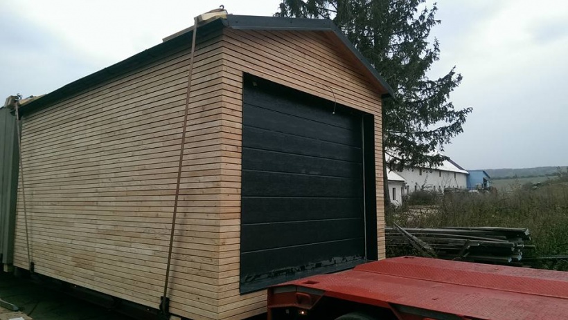 Dvě modulární garáže o rozměru 6 x 4,2 m. Garáže jsou s plochou či sedlovou střechou a obkladem z modřínového rhombusu.