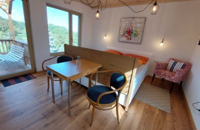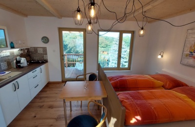 Tento modulární dům velikost 7 x 4,5 metru, se sedlovou střechou byl řešen pro zákazníka jako ubytovací zařízení, které využívá na pronájem. Domek je řešen na klíč, kdy si zákazník vybral koupelnu a dekory dle svého přání, pro kuchyni následně dodal přesný rozkres. Celá kompozice je řešena pomocí kombinace, kdy je užito jak točené omítky v bílém provedení, tak i modřínového rhombusu. Vše je doplněno dřevěnými okny, kdy si i zde vybral zákazník konkrétní dekor. Dům má sedlovou střechu s pálenou taškou a v neposlední řadě i terasu s pergolou. Videa z pokládek našich domů můžete nalézt na našem Youtube channelu Hutchhouse.