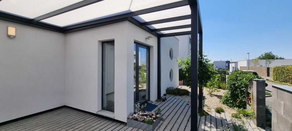 Atipická panelová sestava, která vytvořila tento skvostný výtvor. Jde celkově o 152 m2, ale jelikož místnosti mají vyšší strop, především obývací prostor, tak máte pocit větší velikosti. Stavba vyla sestavována komplet na místě realizace. Dům je doplněn o podlahové vytápění pomocí uhlíkových folií, venkovní elektrické žaluzie, nerezový komín a koupelny přímo dle přání zákazníka. Videa z pokládek našich domů můžete nalézt na našem Youtube channelu Hutchhouse.